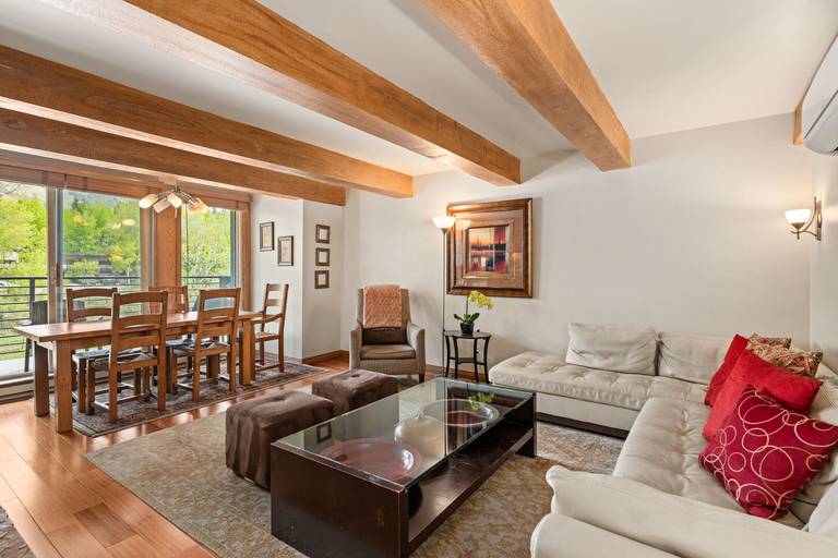 Guests will love the spacious first-floor primary suite, in-unit washer and dryer, and air-conditioning in all bedrooms and the living room—a rare find in Aspen rentals. Whether you're visiting for skiing, hiking, or the world-class dining and shopping in downtown Aspen, this beautifully furnished riverfront condo provides an unbeatable home base.