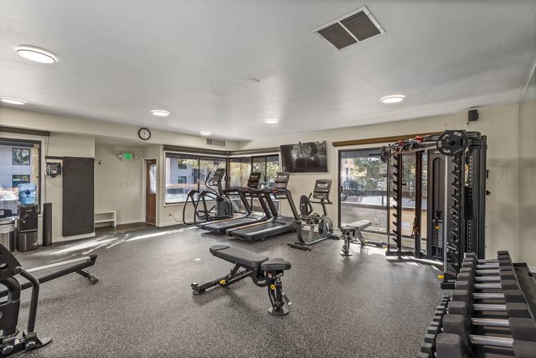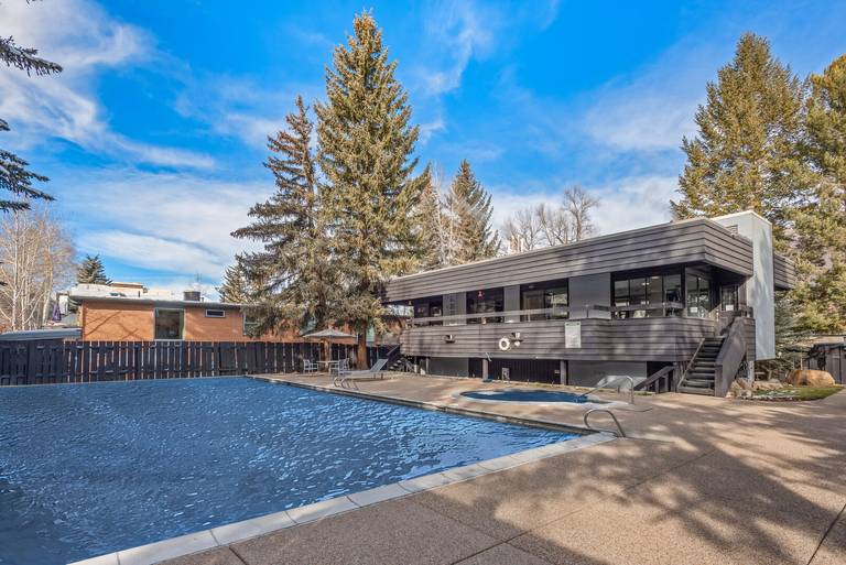 Chateau Roaring Fork's common amenities include an on-site heated pool and hot tubs, a newly remodeled, on-site workout facility, free on-site parking, and free Wi-Fi. This complex has no elevator. The free local bus (RFTA), with access to all four ski mountains, is located right outside.