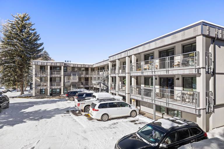 Amenities at Silverglo include a heated pool maintained at hot tub temperatures in winter, a sauna, on-site free parking, and complimentary Wi-Fi. Guests also benefit from housekeeping, concierge services, and free Aspen Airport transportation. Guests enjoy the free, on-demand skier shuttle between Silverglo and Aspen Mountain daily from 8 a.m. to 5 p.m. during ski season. For small gatherings, the Silverglo offers a cozy conference facility with a fireplace. It is perfect for group breakfasts, après-ski events, and intimate gatherings, accommodating up to 25 people. The complex has a laundry room adjacent to the conference room. Quarters are available 8 am-5 pm Monday-Friday from the onsite Front Office. Please note this property does not have an elevator.