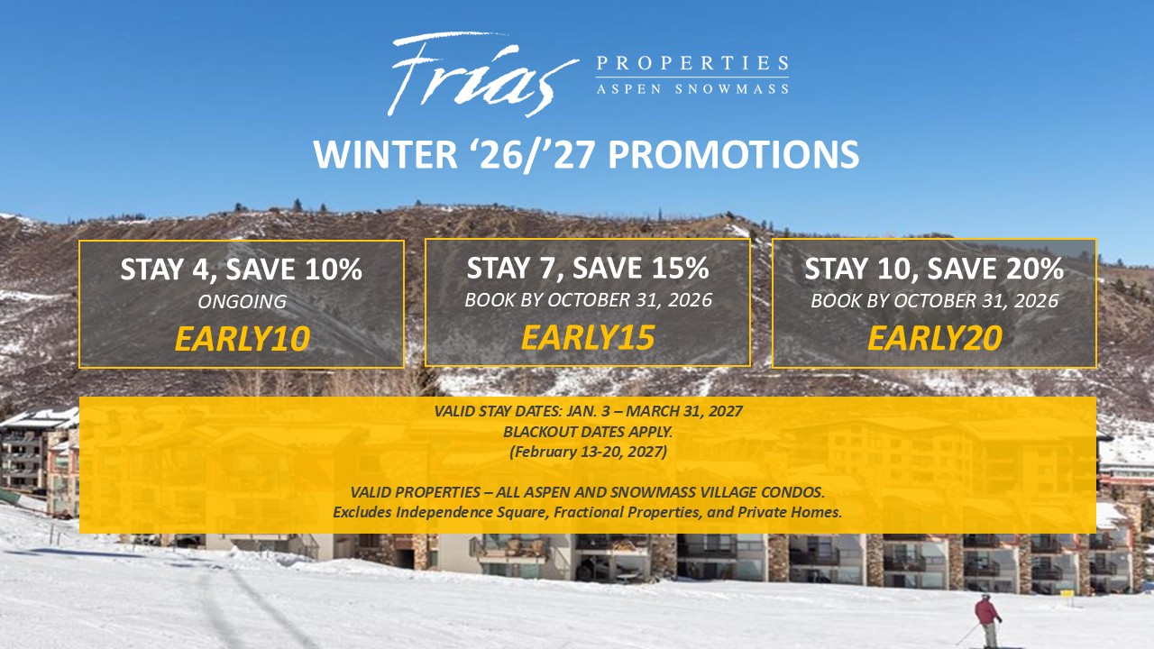 Frias Properties of Aspen Snowmass presents an impressive selection of over 130 vacation rentals in the Aspen Snowmass area, catering to a wide range of preferences and budgets. Our offerings include slope-side condos, budget-friendly hotel rooms, spacious private homes, and luxurious resort residences. With a rich history spanning five decades of serving visitors from around the world, we are committed to providing our guests with a seamless and enjoyable stay.